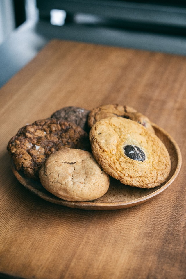 1枚でご満足いただけるボリュームたっぷりのクッキーです。こだわり抜いたクッキードウと最適な焼き加減で、まさにチュウイーな食感を作り上げました。ホームメイドの素朴な味わいが、病みつきとなること間違いなしの自信作です。 4枚セットでお届けいたしますので、下記5種類の中からお好きな組み合わせをお選びいただき、備考欄に明記してください。 配送はネコポスにてポスト投函のお届けとなり、送料は全国一律290円です。 また、ご注文頂いてから発送まで通常約5日のお時間をいただきますこと、ご了承ください。 1、チョコレートチップクッキー 定番のチョコレートチップクッキーを、外は香ばしく、中はしっとりと焼き上げました。ダークチョコレートをたっぷり使用し、シーソルトをトッピング。あっという間に食べてしまうこと、間違いなしの美味しさです。 2、ストロベリー&ホワイトチョコレートチップクッキー ストロベリーとホワイトチョコレートチップの最高のハーモニー。ドライストロベリーがゴロゴロと入っています。お子さまには特に一番人気のフレーバーです。 3、ダブルチョコレートチップクッキー チョコ好きの皆さまに、ぜひお試しいただきたいフレーバーです。ココアパウダーたっぷりのクッキーにシーソルトのトッピングが、リッチな味わいをさらに引き立てます。電子レンジにて数秒温めて、チョコレート三昧の贅沢な風味をご堪能ください。 4、スニッカードゥードル スニッカードゥードルは、シナモンと砂糖を練り込んだバターたっぷりのクッキーです。やわらかくしっとりとした食感と、お口全体に広がるシナモンの香りをお楽しみください。バニラアイスクリームと合わせて食べるのもおすすめです。 5、オートミールレーズンクッキー アメリカでは定番の組み合わせ、オートミールレーズンクッキーは、しっとりとした食感とコク深い味わいが特徴です。オートミールは食物繊維や鉄分、カルシウムやビタミンB1などが多く含まれており、栄養価がとても高く、最近は日本でも注目を集めている食材です。 *備考欄の書き方例* 「1:1枚、2:2枚、4:1枚」 「3のみ4枚」 2セットご購入いただける場合は、合計8枚分となるようにご記入ください。 備考欄へのご記入がない場合は、当店にてフレーバーを決めさせていただくことがあります。 ネコポス配送のため、お受取日及びお時間のご指定はでき兼ねますこと、ご了承ください。発送時、メールにてご連絡をさせていただきます。 <原材料名> チョコレートチップクッキー:小麦粉(国内製造)、チョコレート、砂糖、バター、鶏卵、バニラエッセンス、重曹、塩 ストロベリー&ホワイトチョコレートチップクッキー:小麦粉(国内製造)、砂糖、バター、ホワイトチョコレート、ドライストロベリー、鶏卵、バニラエッセンス、重曹、塩 ダブルチョコレートチップクッキー:チョコレート(マレーシア製造)、小麦粉、砂糖、バター、鶏卵、ココアパウダー、重曹、塩、ベーキングパウダー スニッカードゥードル:小麦粉(国内製造)、砂糖、バター、鶏卵、バニラエッセンス、クリームタータ、シナモンパウダー、重曹、塩 オートミールレーズンクッキー:砂糖(国内製造)、小麦粉、バター、オーツ麦、レーズン、鶏卵、モラセス、バニラエッセンス、重曹、シナモンパウダー、オールスパイス、クローブ、塩 <内容量> 220g(4枚) <賞味期限> 発送日を含め6日間 (焼きたての風味をお楽しみいただくため、なるべく早くお召し上がりください。) <保存方法> 直射日光、高温多湿を避けて保存 すべてのクッキーに特定原材料7品目のうち、乳、小麦、卵が含まれています。 栄養成分表示につきましては、商品画像よりご参照ください。 配送中にチョコレートが溶けてしまうことがありますが、品質には問題ございません。